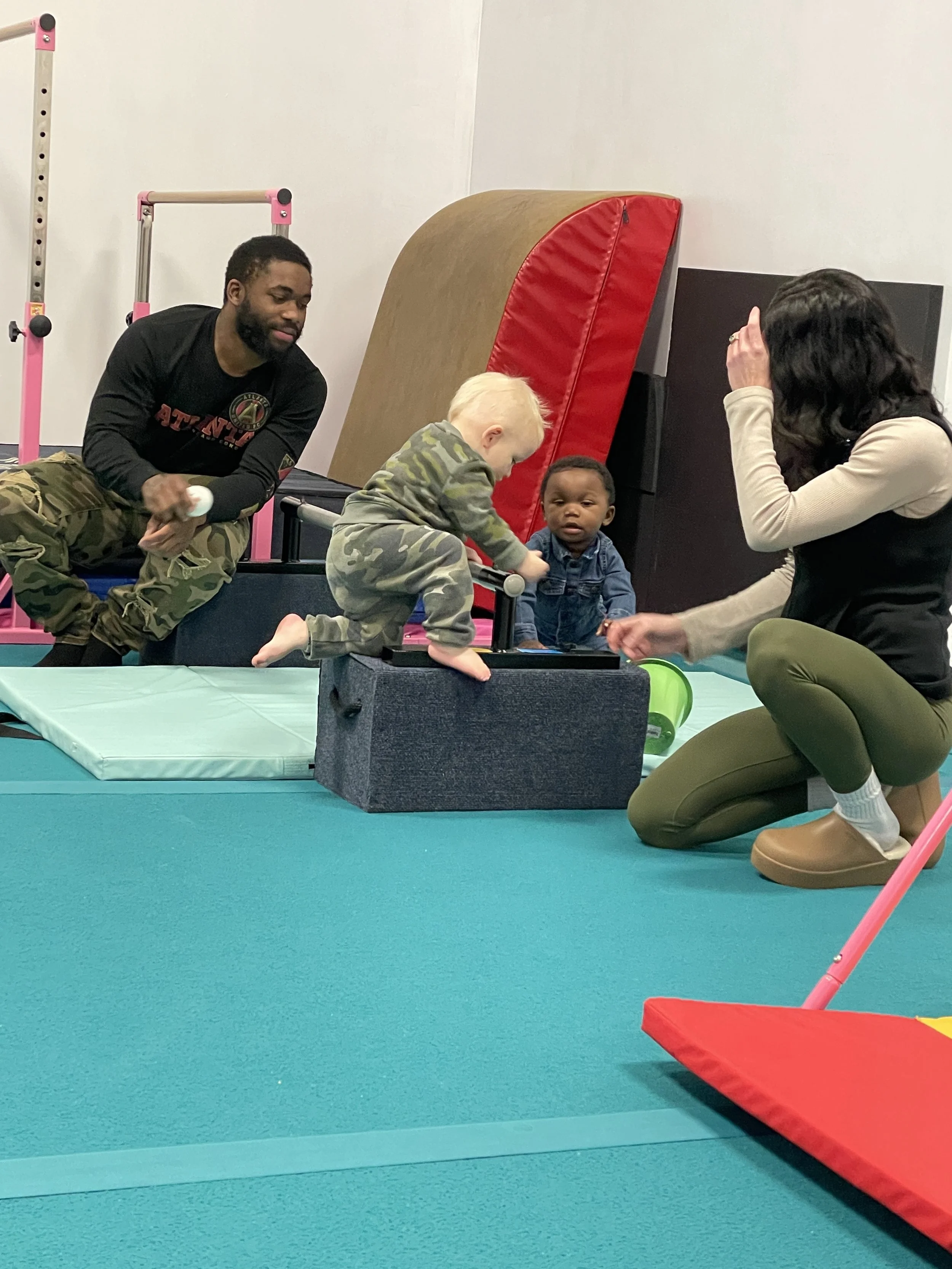 Wiggle & Wonders is a 60 minutes coach-led class focused on whole-child development: fine + gross motor skills, music, socialization, and guided play. Parents are not on the floor for this class, making it a great “first step” toward daycare/preschool-style routines. Parents are advised to stay close, mainly if their child is not potty trained.